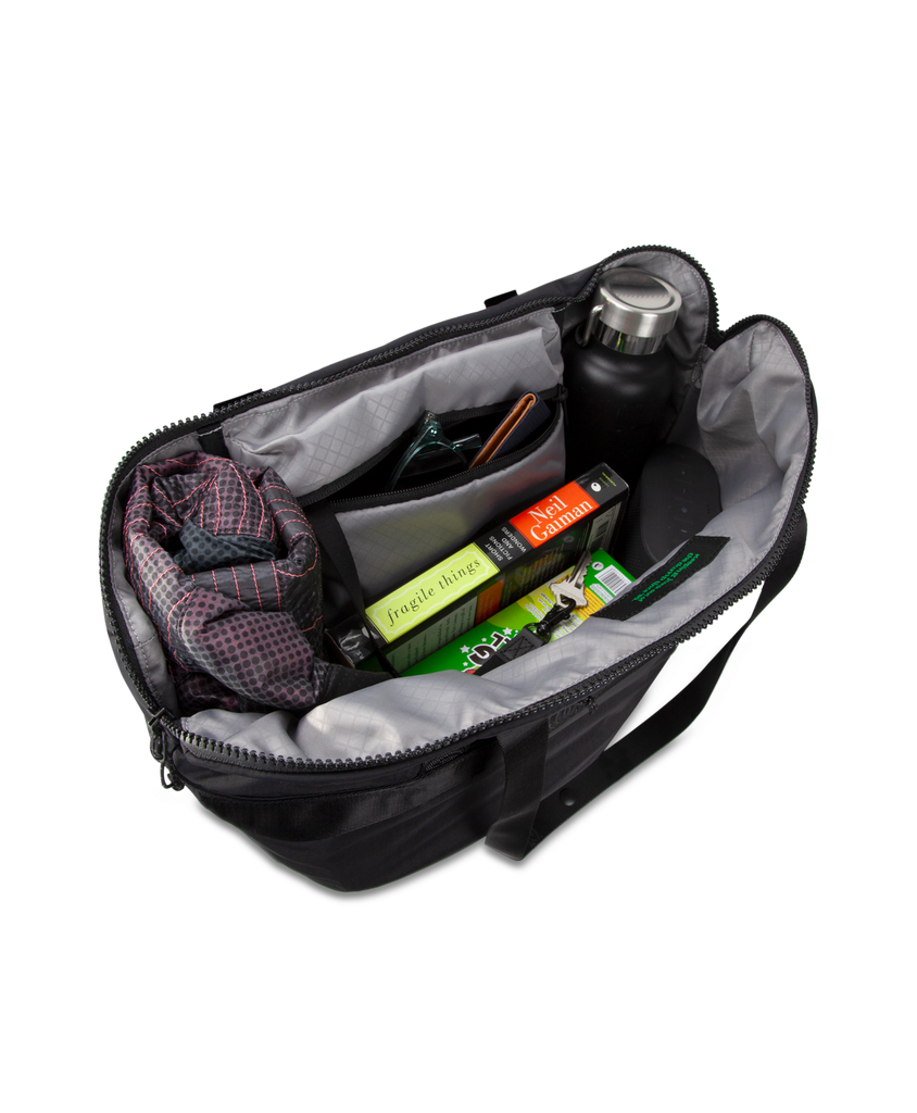 Roomy, highly functional, and made from a water-repellent, fully wipeable material, the Packable Tote is an essential companion for the savvy traveler. Both the interior and exterior zip pockets work great for storing a wallet, keys, and phone. Don’t worry about getting bogged down. Use the convenient luggage pass through to attach to your wheeled luggage and quickly move through the terminal. When you’re not using the bag, simply fold it up and pack it into itself. Load it up with your in-flight essentials and be on your way!